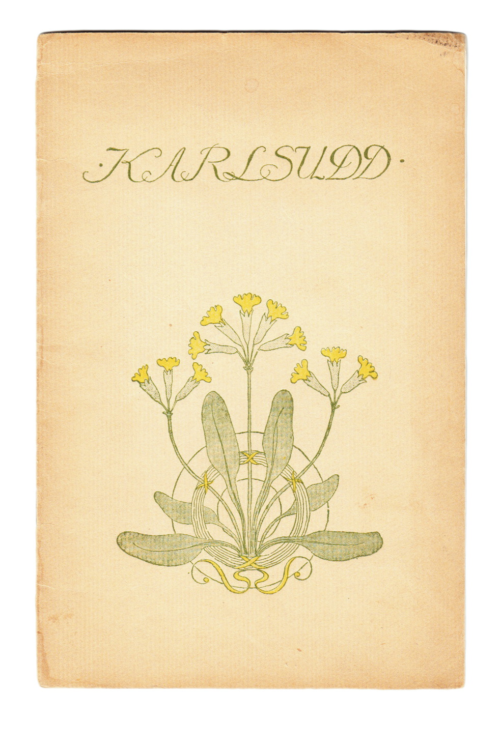 Stockholm, Hasse W. Tullberg, 1901. 8:o. 13,+ (1) s. Fotoillustrerad. Klammerhäftad med tryckt något solkigt omslag. Reklambroschyr för byggande av sommarstugor och villor på Karlsudd, en halvö i södra delen av skärgårdskommunen Vaxholm. Broschyren är utskickad av Arrende-Aktiebolaget Karlsudd, vilket 1899 från Bogesunds fideikommiss och Nils Albrekt Stefan von Lantingshausen von Höpken förvärvade arrenderätten av halvön. Bilderna är efter fotografier av F. Klemming och klicheerna utförda av Warner Silfversparre Nya Grafiska Aktiebolag. Karlsudd har idag en blandning av gammal och ny bebyggelse, däribland två herrgårdar, och där bor cirka 100 hushåll.