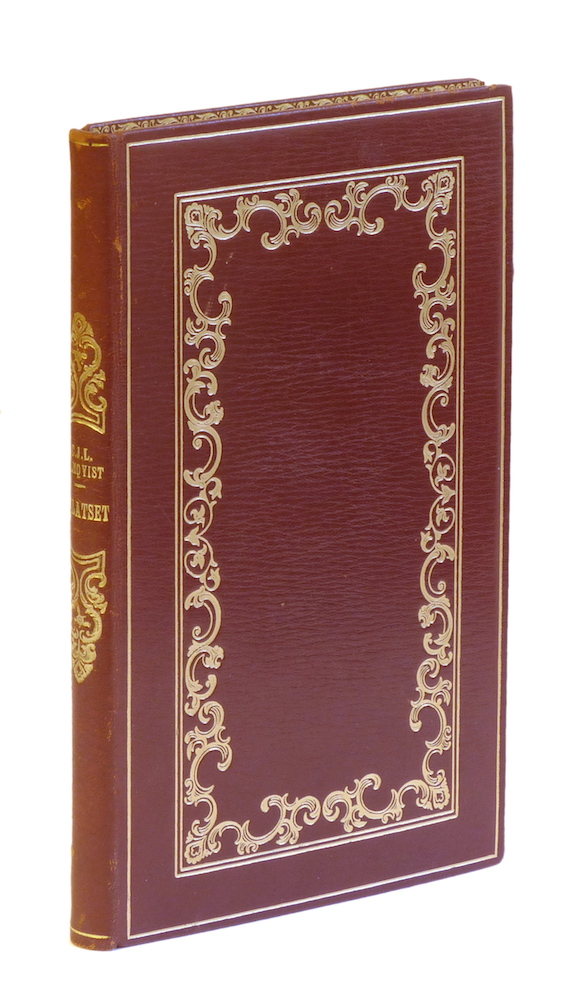 Stockholm, Wahlström & Widstrand, 1947. 8:o. IX,+ (blank),+ 83,+ (2) s.+ signerad originaletsning. Rödbrunt marokängband med guldornerad rygg och pärmar med förgylld ram med blomstergirlanger, inre bordure, helt guldsnitt och medbundet omslag (Nordiska bokhandeln). Ryggen med lite småskrap och övre pärmhörnen minimalt stötta. Med exlibris ”Djursholm” och med ett frimärke med författarens porträtt diskret insatt på ett av försättsbladet. Bibliofilupplaga om 200 numrerade exemplar med en av Bertil Bull Hedlund signerad originaletsning, detta är nummer 68.