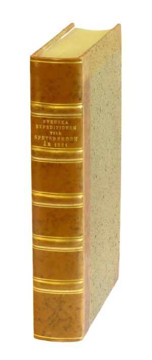 2,800 krSvenska expeditionen till Spetsbergen år 1861 utförd under ledning av Otto Torell. Ur deltagarnes anteckningar och andra handlingar skildrad af K. Chydenius. Med karta, taflor och träsnitt.Stockholm, P. A. Norstedt & söner, 1865. 8:o. (6),+ 480,+ (4) s.+ utvikbar färglitogr. karta,+ stor utvikbart litogr. panorama,+ 15 färglitogr. planscher, varav 3 dubbelsidiga. Trägravyrer i texten. Lagerfläckig. Fint senare hfrbd, guldornerad rygg med upphöjda bind, övre guldsnitt och med första främre tryckta häftesomslaget medbundet. Hulth 9. Schiötz 216. Liljequist, kapitel 5. Otto Torells Spetsbergsexpedition 1861 var en av de riktigt stora svenska polarexpeditionerna, statsfinansierad med extra medel från kronprinsen, sedermera Oskar II. Med på expeditionen, vid sidan av Chydenius och Torell, var bl.a. vetenskapsmännen A. E. Nordenskiöld, N. Dunér, A. Goes, A. J. Malmgren, F. A. Smitt,, C. W. Blomgren, G. v Yhlen. Kartan över Spetsbergen utfördes av Dunér och Nordenskjöld. Otto Torells expedition med skeppen Aeolos och Magdalena var den första framgångsrika tvärvetenskapliga forskningsexpeditionen till Spetsbergen, vars resultat och iakttagelser fortfarande står sig och är värdefulla (Thorén s. 35). Karl Chydenius själv (1833-64) var finsk fysiker och ansvarig för trianguleringarna samt ledde exkursioner med Aeolos. -