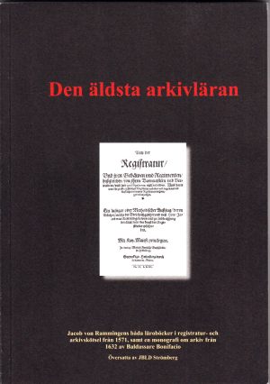 200 krDen äldsta arkivläran. Jacob von Rammingens båda läroböcker i registratur- och arkivskötsel från 1571, samt en monografi om arkiv från 1632 av Baldassare Bonifacio. Översatta av JLBD Strömberg.Lund, Wallin & Dalholm, 2010. 8:o. 204,+ (3) s. Häftad. Med översättning, originaltext och faksimil. -